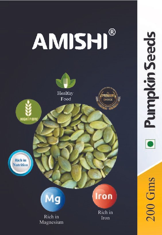 Pumpkin seeds, are edible, flat, oval-shaped green seeds. These seeds are good source of healthful oils, magnesium, protein and unsaturated fats, including omega-6 fatty acids that enhance the health of the heart, bones, and other functions.