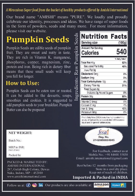 It can be used as Raw, roasted & salted as per the taste. You can ground them into smoothies or sprinkle on top of a salad or soup.